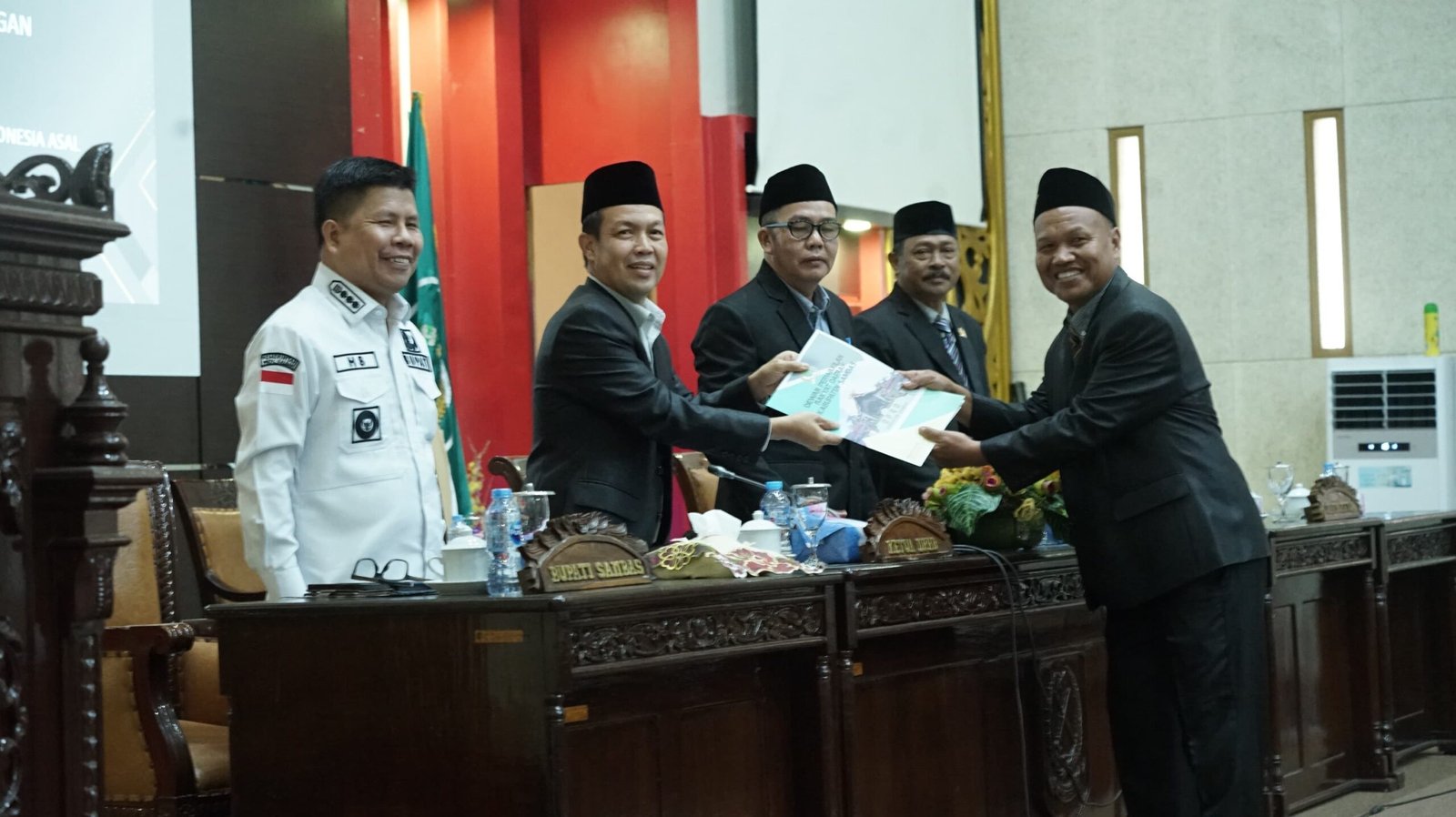 Kesepakatan itu diambil dalam sidang paripurna yang digelar di Gedung DPRD Kabupaten Sambas dan dihadiri oleh Bupati Sambas Satono, Ketua DPRD Abu Bakar, serta para wakil ketua Lerry Kurniawan Figo, Sehan Abdul Rahman, dan Ferdinan Syolihin. Dari total 45 anggota DPRD, sebanyak 43 hadir dalam sidang tersebut.