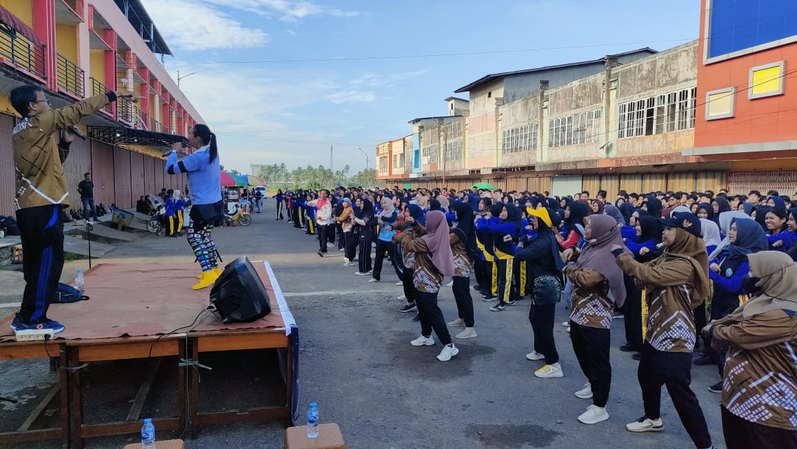 Ratusan peserta yang terdiri dari siswa, guru, serta warga sekitar tampak antusias mengikuti gerakan senam yang dipandu langsung oleh Zin Ockey.